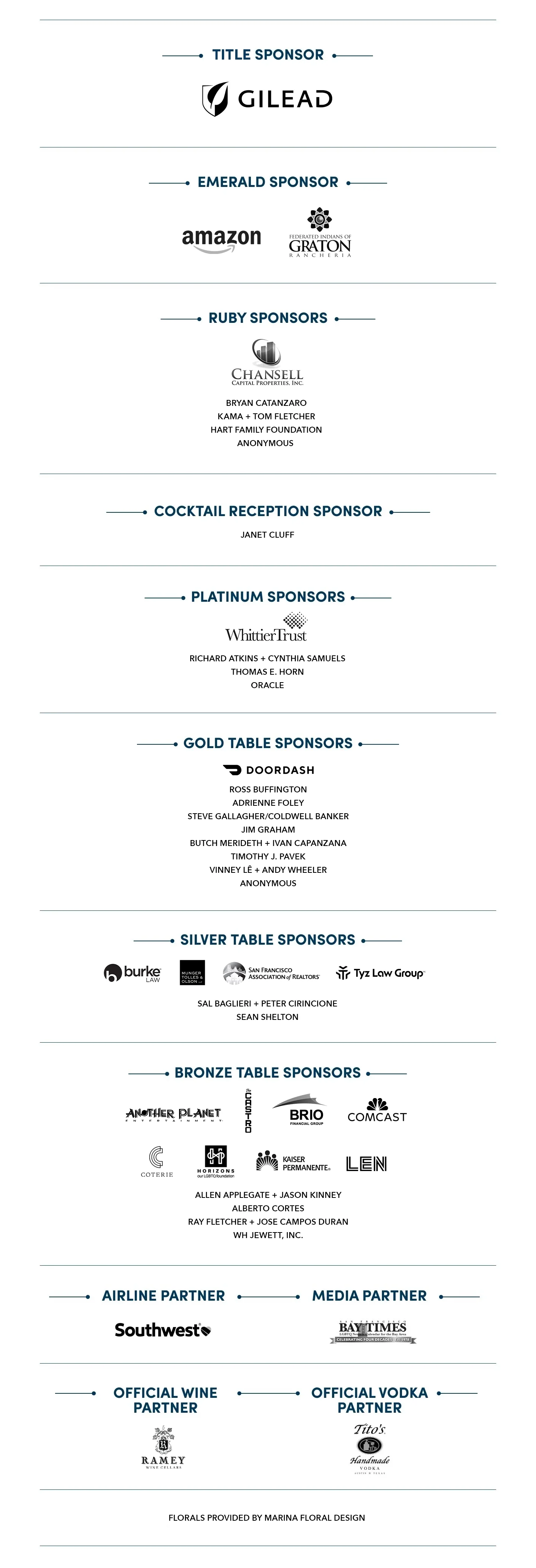 Sponsor list as of 4/21/26
